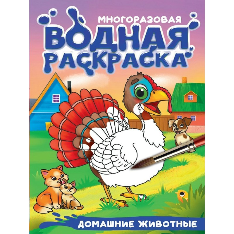 Многоразовая водная раскраска с чёрным контуром. Домашние животные