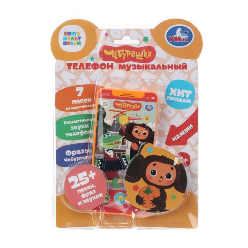 Музыкальный телефончик Чебурашка 25+ песен и звуков