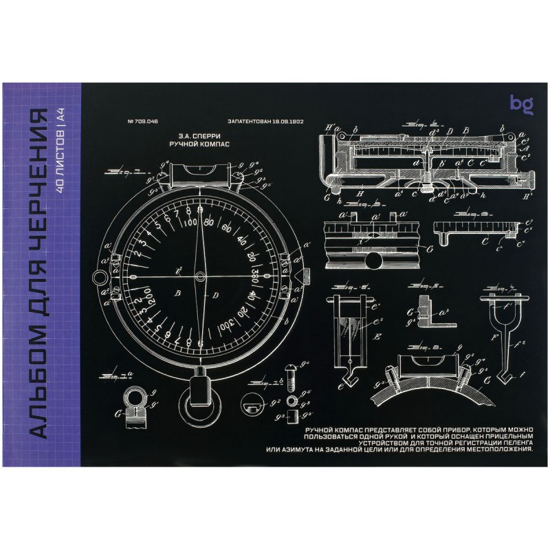 Альбом для черчения на склейке А4, 40л., 160г/м2 BG