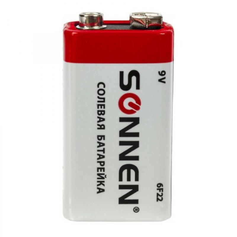 Батарейка 6F22 Крона (6R61, 6F22, 1604), солевая, 1 шт., в пленке, SONNEN
