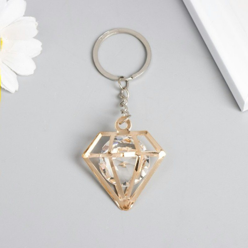 Брелок сувенир металл "Бриллиант" кристалл, золото 2х4х4 см. Импорт