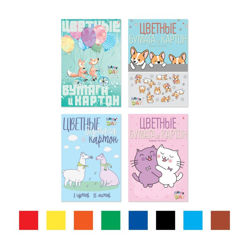 Бумага цветная 16л. 8 цв. +картон "МУЛЬТИКИ" 4 ВИДА Альт
