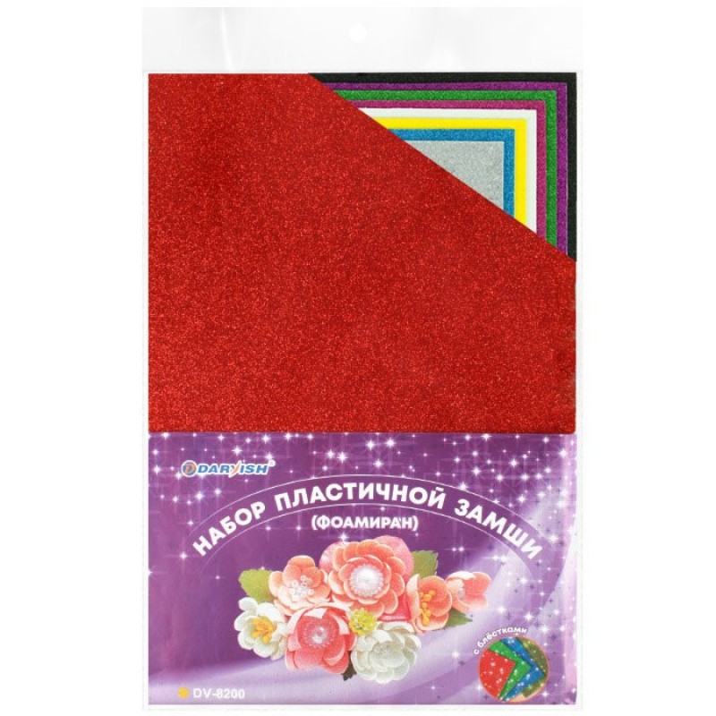 Для творчества Фоамиран набор 10цв 10л. пластичная замша, с блёстками Darvish