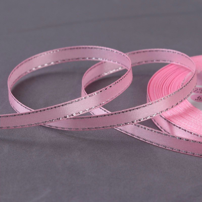 Для творчества Лента атласная 6мм*25м, серебряные нити №004 розовый Арт Узор