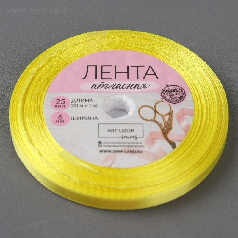 Для творчества Лента атласная 6 мм*23 м, цвет жёлтый Арт Узор
