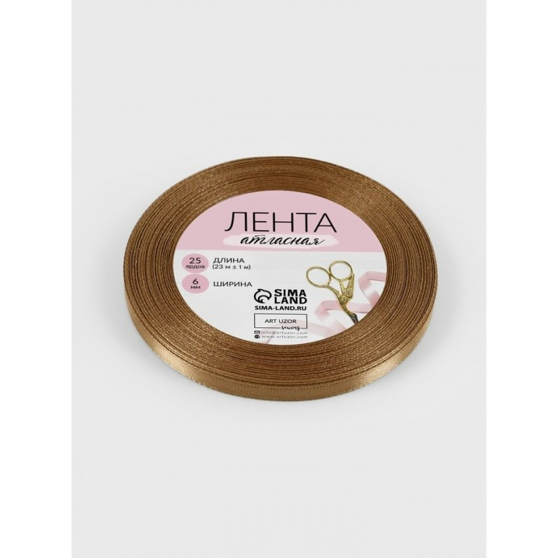 Для творчества Лента атласная 6 мм, 23±1 м, тёмно-бежевая №106