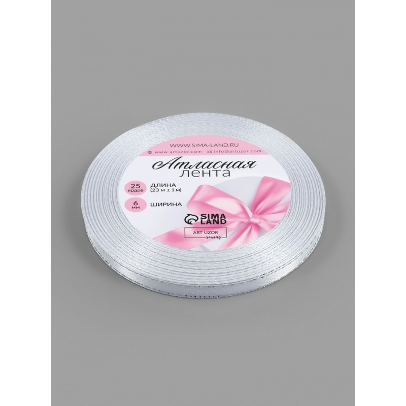 Для творчества Лента атласная 6мм*25±1ярд(23м±1м) серебряные нити №01 белый Арт Узор