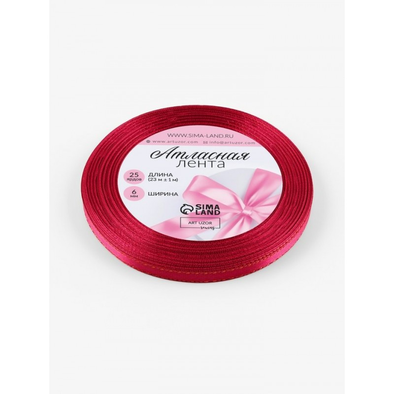 Для творчества Лента атласная 6мм*25±1ярд(23м±1м) золотые нити №72 малиновый Арт Узор
