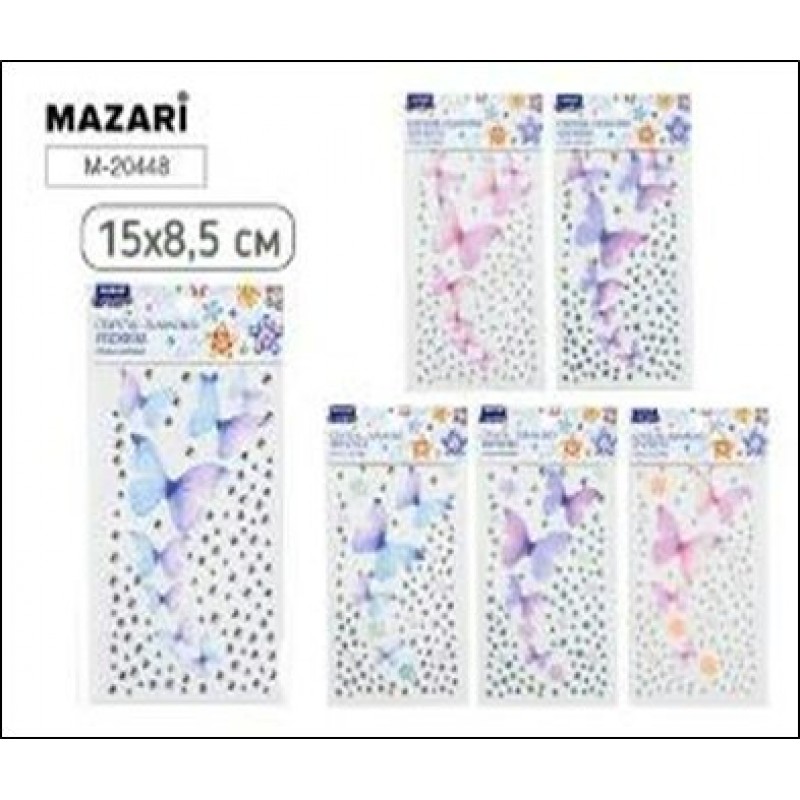 Для творчества Стразы-наклейки пластиковые, 15*8.5 см. 6 дизайнов Mazari