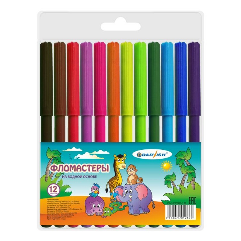 Фломастеры 12 цв. круглые "Мультики", смываемые, картон. упак., европодвес Гамма