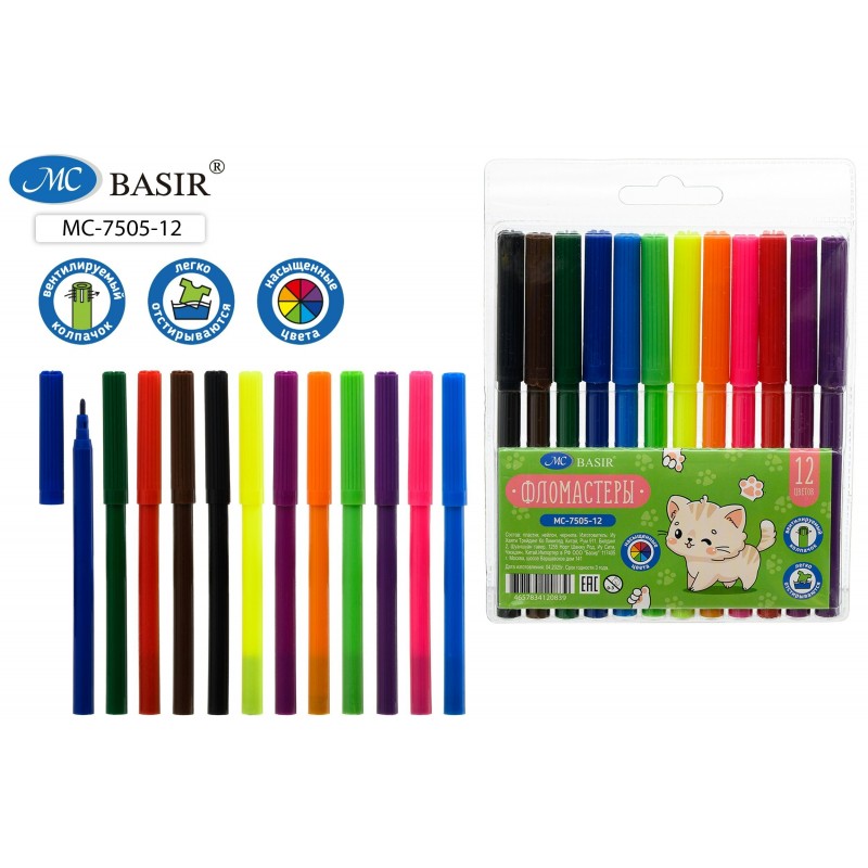 Фломастеры 12 цв. круглые "КОТЯТА" BASIR