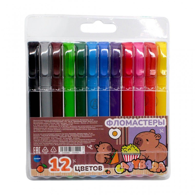 Фломастеры 12 цв. круглые Капибара, на водной основе Centrum