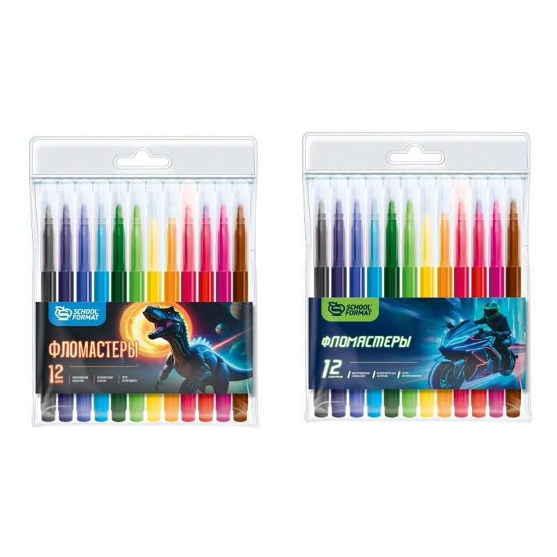 Фломастеры 12 цв. круглые МИКС ДЛЯ МАЛЬЧИКОВ ,классические. смываемые Schoolformat