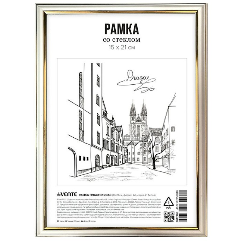 Фоторамка пластиковая 15*21см белая, стекло, серия 2 deVente