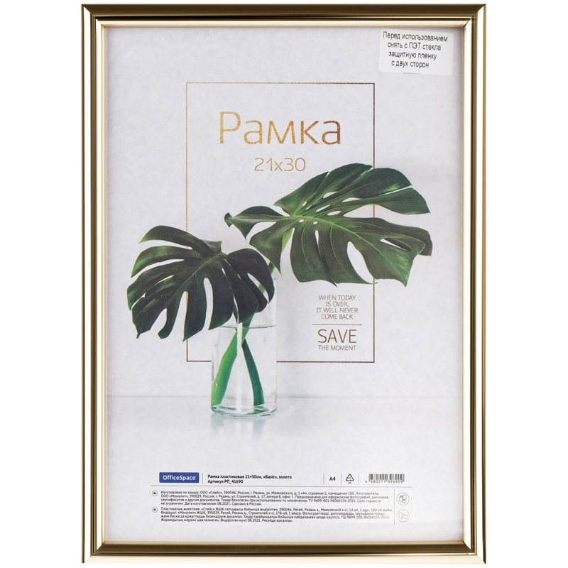 Фоторамка пластиковая 21*30см "Basic", небьющееся стекло, золото OfficeSpace