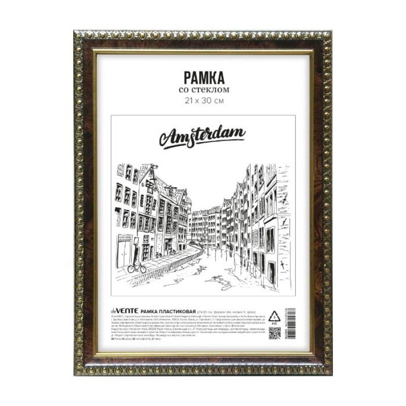 Фоторамка пластиковая 21*30см орех с золотом, стекло, серия 900, deVente