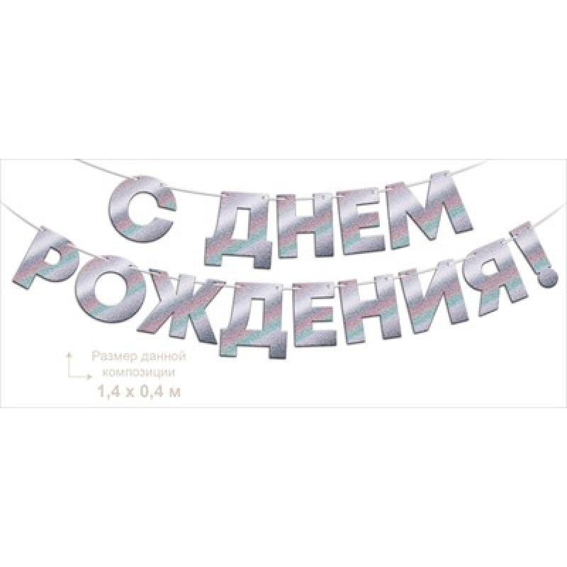 Гирлянда фольгированная "С Днем Рождения!", серебрянная голография