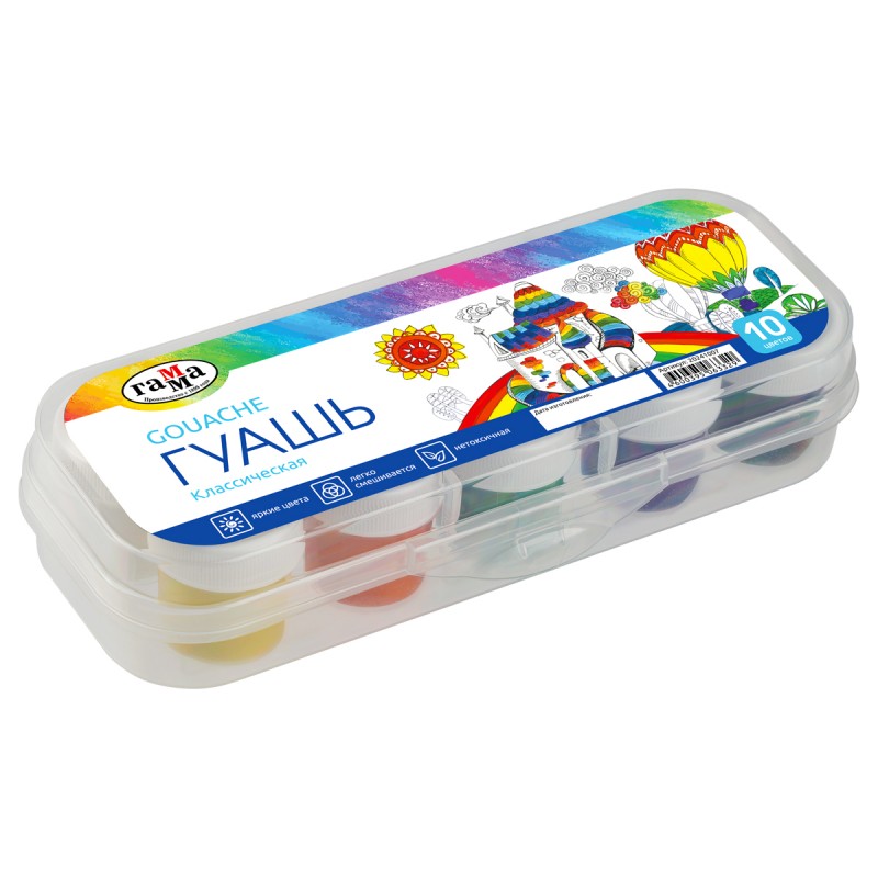 Гуашь 10 цв "Классическая", 17,5мл, пластиковый пенал Гамма