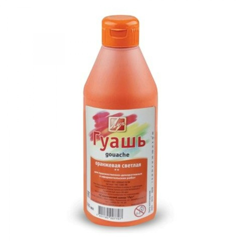 Гуашь художественная "Классика", 500 мл, оранжев. светлая,пласт.бутылка,дозатор Луч