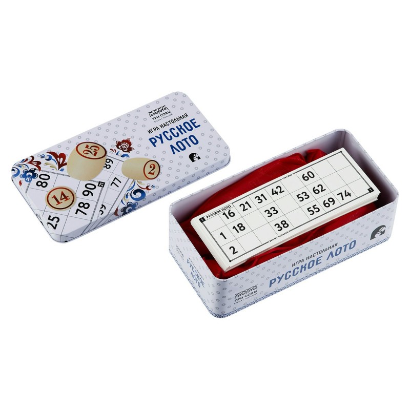Игра настольная "Русское лото", с бочонками, металлическая коробка ТРИ СОВЫ