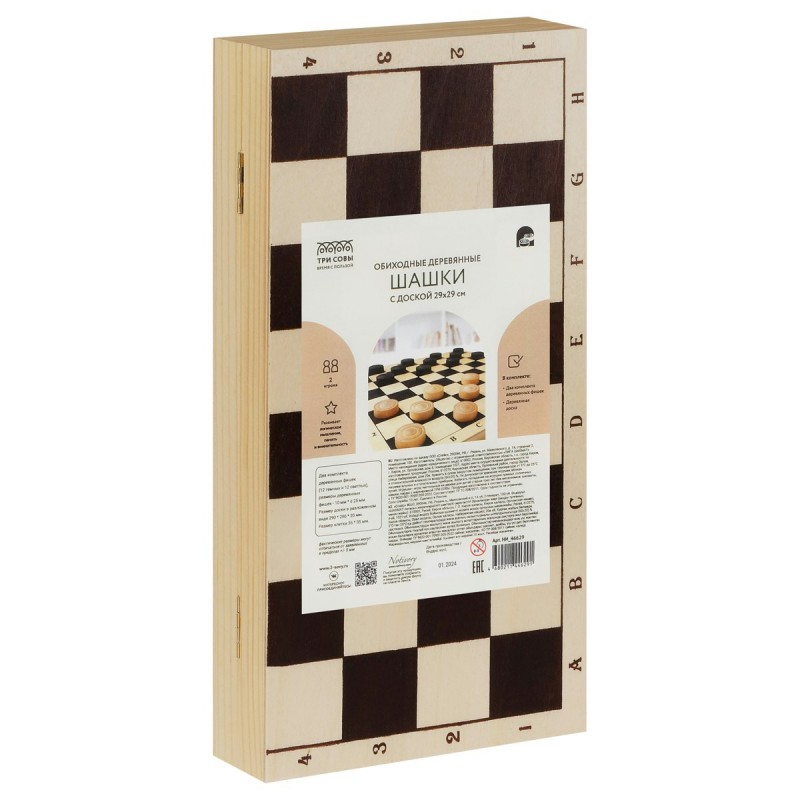 Игра настольная Шашки, деревянные ,с деревянной доской 29*29см. ТРИ СОВЫ