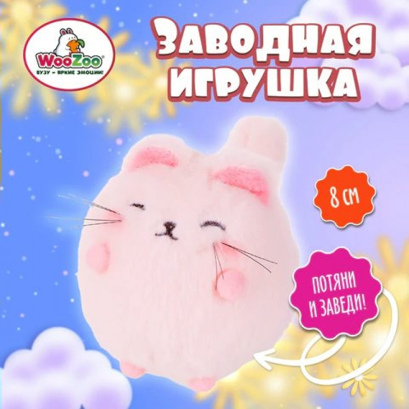 Игрушка пищалка, мягкая, заводная"Кот Пухляш", высота 8 см,, WOOZOO (ВУЗУ)