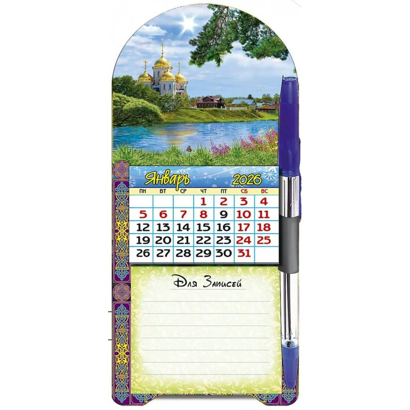 Календарь на магните с ручкой и блокнотом Природа 2026 г 95х205 мм