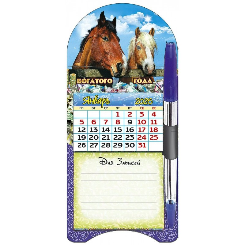 Календарь на магните с ручкой и блокнотом Символ года 2026 г 95х205 мм