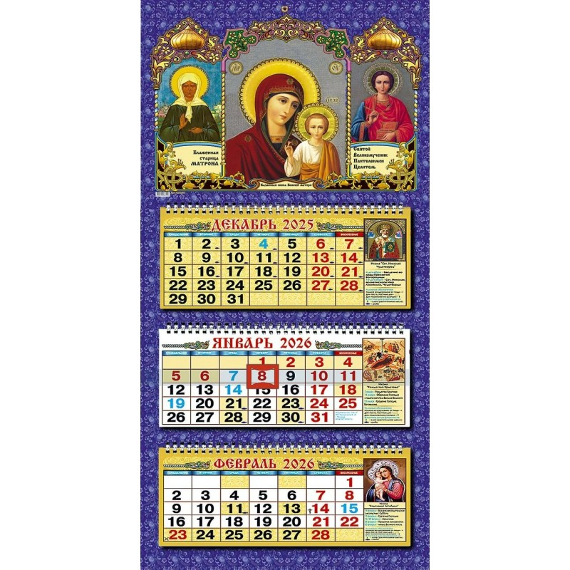 Календарь Квартальный. Казанская икона Божьей Матери 2026 г 333х720 мм
