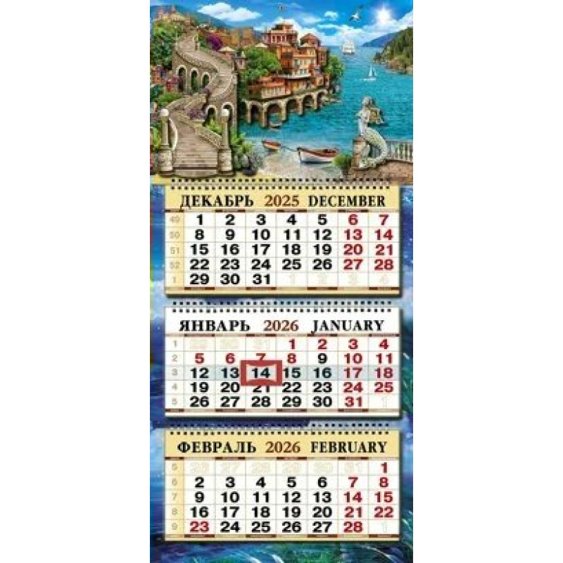Календарь Квартальный Б-объемный Море. 2026 г. 333х720 мм