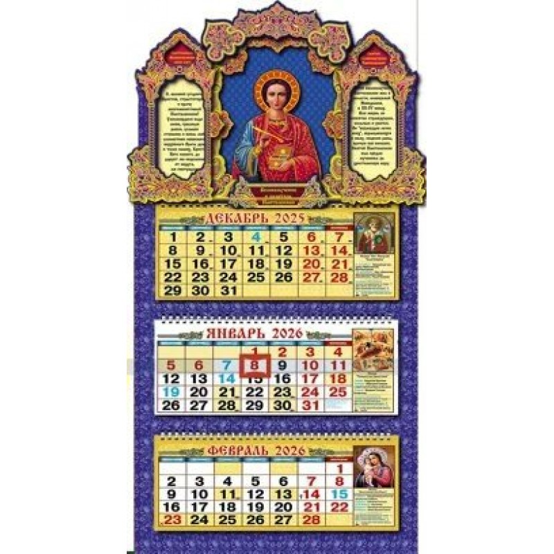 Календарь квартальный объемный Великомученик и целитель Пантелеимон 2026 г. 333х635 мм