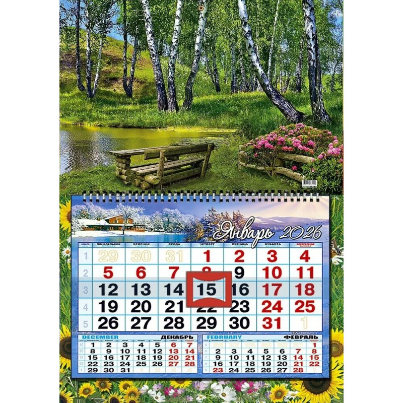 Календарь Квартальный одноблочный Природа 2026 г 333х480 мм