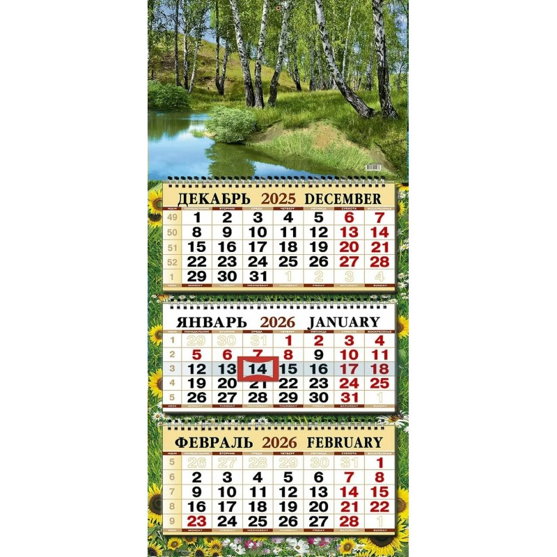 Календарь Квартальный Б-объемный Деревня 2026 г. 333х720 мм