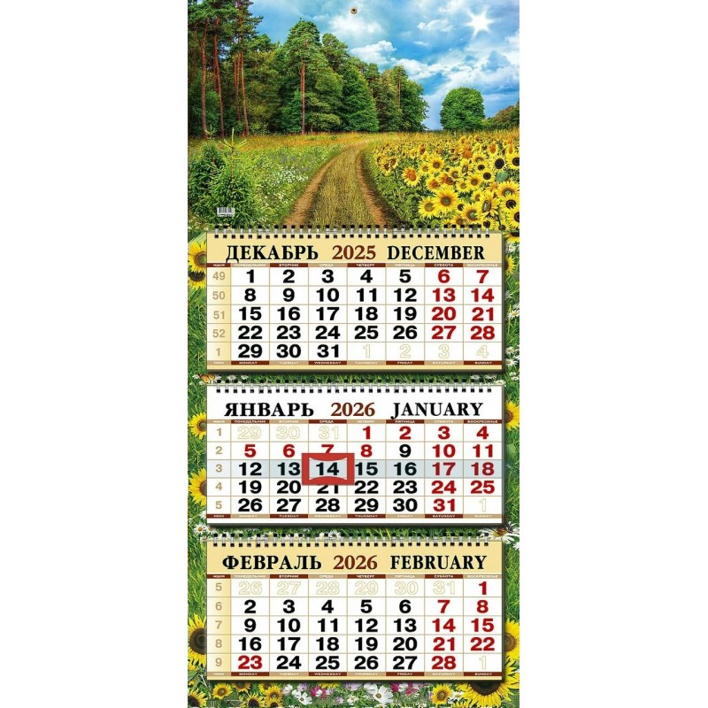Календарь Квартальный природа подсолнухи 2026 г 333х720 мм