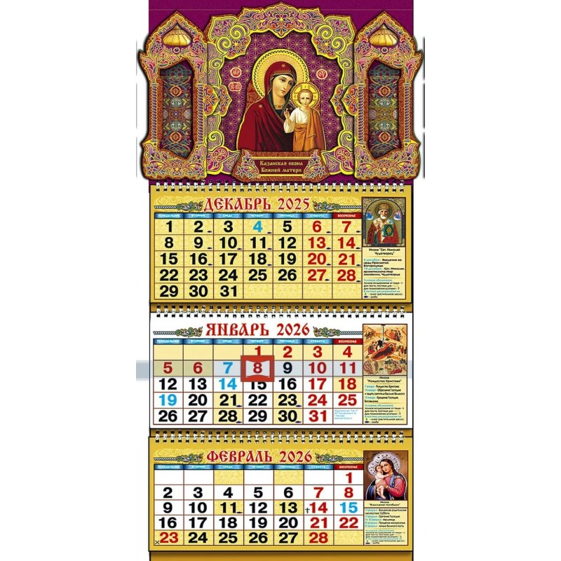 Календарь квартальный С-объемный.Казанская икона Божьей Матери 2026 г 245х500 мм