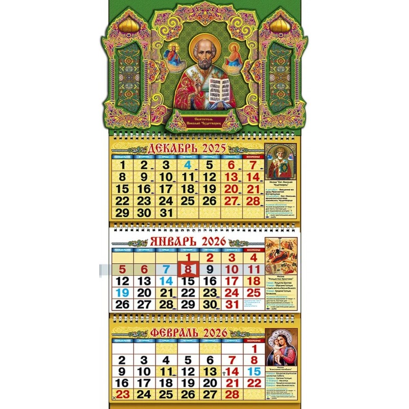Календарь квартальный С-объемный.Святитель Николай Чудотворец 2026 г 245х500 мм
