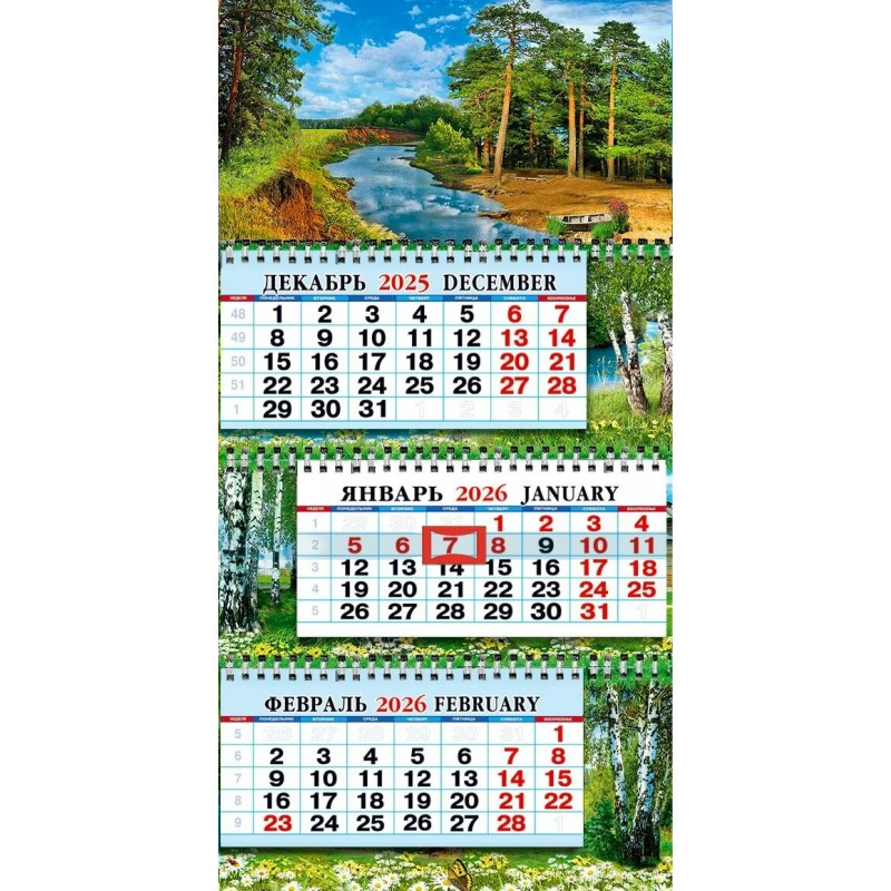 Календарь Квартальный средний природа 2026 г 245х470 мм