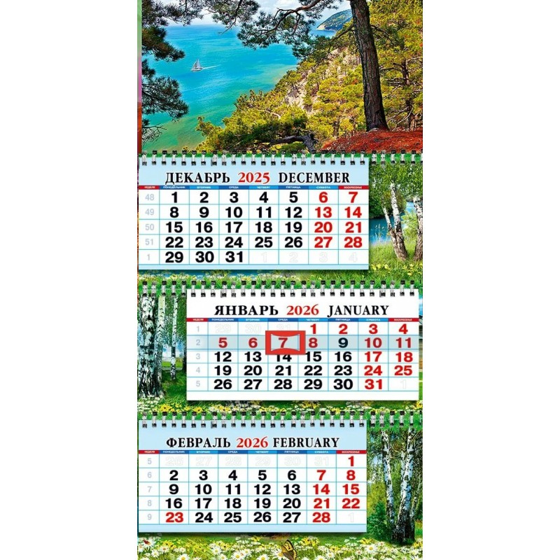 Календарь Квартальный средний природа 2026 г 245х470 мм