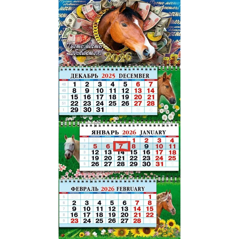 Календарь Квартальный средний символ года 2026 г 245х470 мм