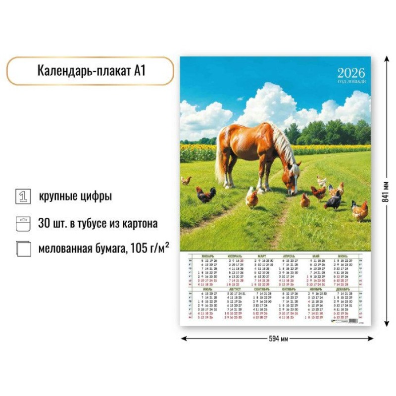 Календарь Листовой А1 символ года 2026 г 594х841 мм