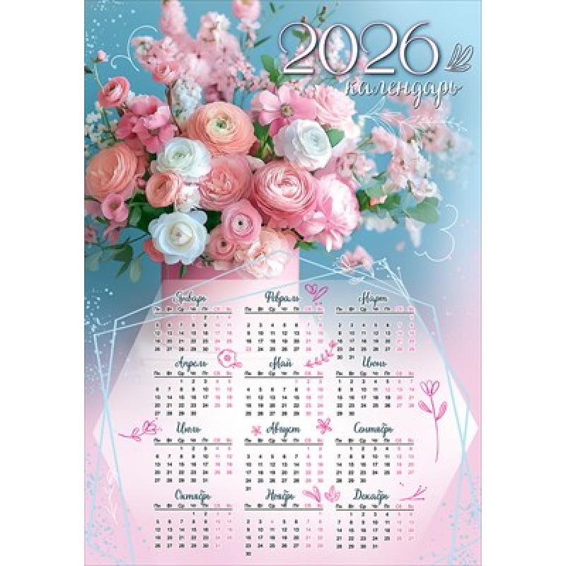 Календарь Листовой А4 (букет цветов) 2026 г 210х295 мм