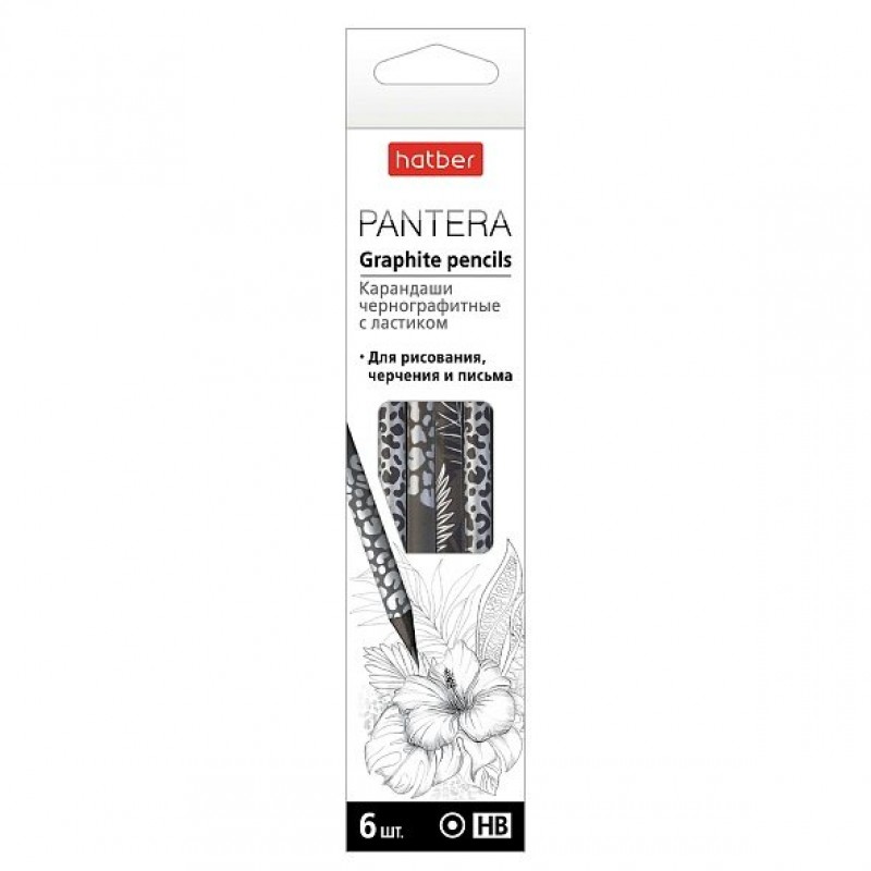 Карандаш ч/г черное дерево Набор 6шт. "Pantera" (HB) с ластиком, Hatber