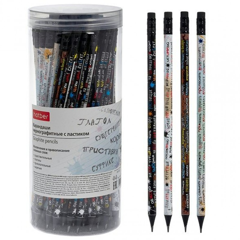 Карандаш ч/г дерево "Вспомнить все. Правописание" HB, круглый,с ластиком заточен. Hatber