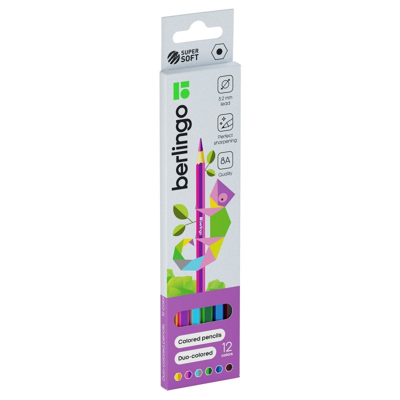 Карандаши 12цв. дерево 6шт( с двухцветным грифелем )"SuperSoft. 2in1", Berlingo