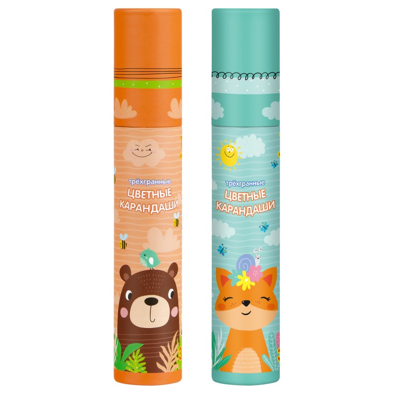 Карандаши 12цв. дерево "Друзья енота", трехгранные, заточен., тубус Мульти-пульти