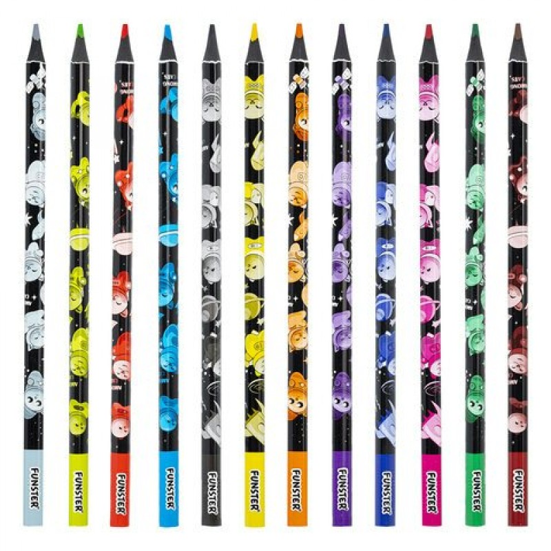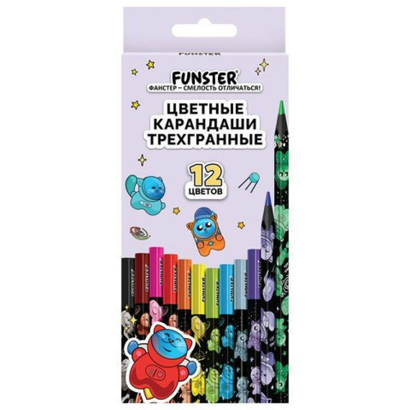 Карандаши 12цв. пластик AMONGCATS,черный корпус с принтом, трехгранные, FUNSTER (ФАНСТЕР)