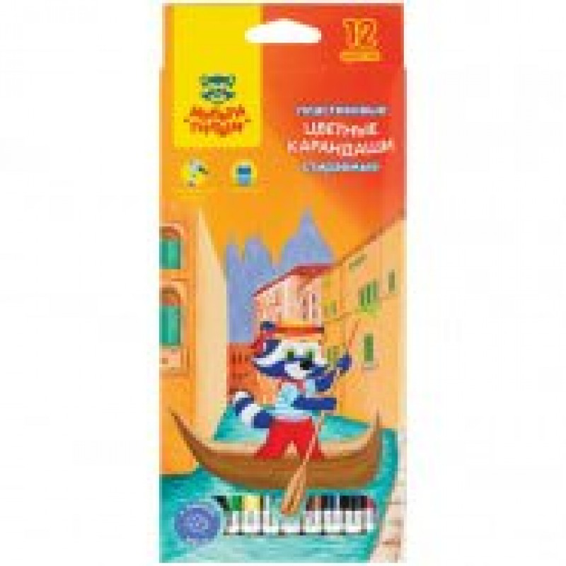 Карандаши 12цв. пластик стираемые "Енот в Венеции" с ластиком Мульти-пульти