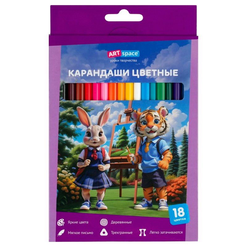 Карандаши 18цв. дерево School mood", трехгранные, заточен., картон. ArtSpace