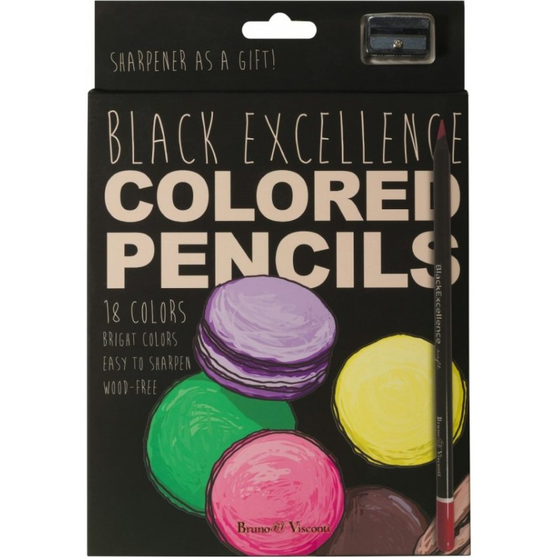 Карандаши 18цв. пластик "BLACK EXCELLENCE" С ТОЧИЛКОЙ, 4 ВИДА Bruno Visconti