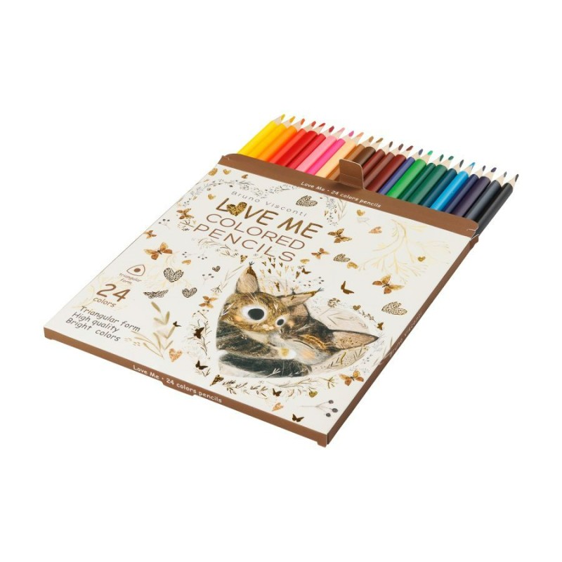 Карандаши 24цв. дерево "LOVE ME. КОТИКИ ПРИНОСЯТ СЧАСТЬЕ", грифель 3 мм. Bruno Visconti